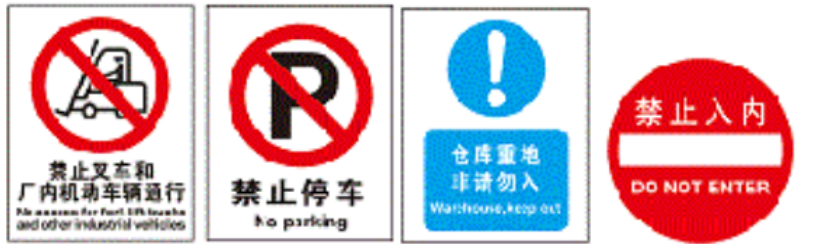 紅色鮮艷,警示作用較強(qiáng),以上第一個圖標(biāo)中的紅色提示均表示此處禁止叉車和廠內(nèi)機(jī)動車輛通行;