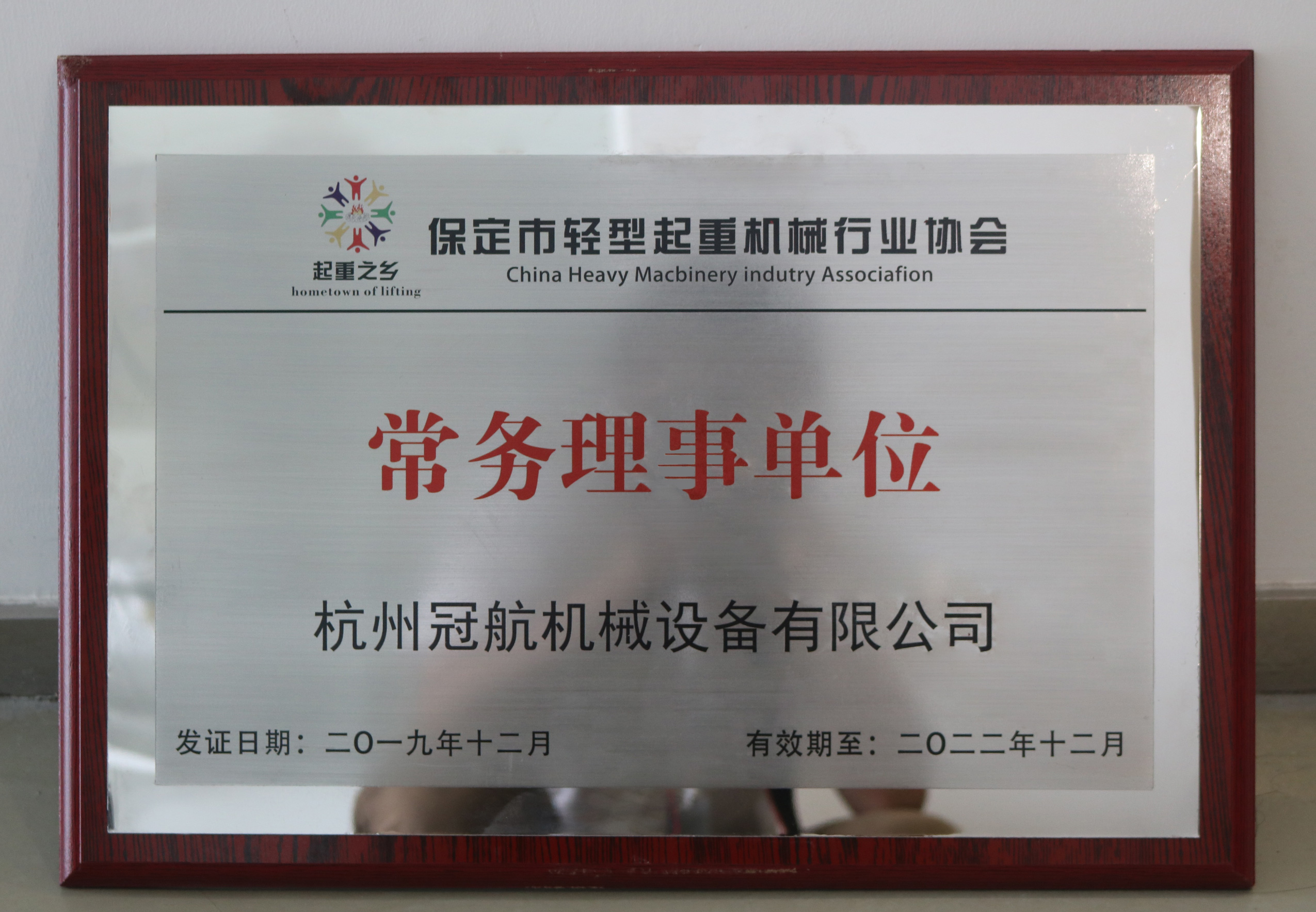 冠航成為保定市輕型起重機(jī)械行業(yè)協(xié)會常務(wù)理事單位
