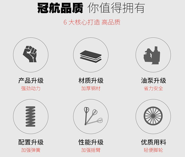 搬運(yùn)車分為型號(hào):450-1020/450-1000/540-850型。油缸選用剛精密研磨管,進(jìn)口油封,一體式閥芯,便利拆開和修理,整體油泵進(jìn)口密封原件。雙后輪+輔助輪,其輪子也分為2種,一種是尼龍輪,一種是橡膠輪。尼龍輪適合水泥地面,橡膠輪適合大理石、油漆、環(huán)氧地面。