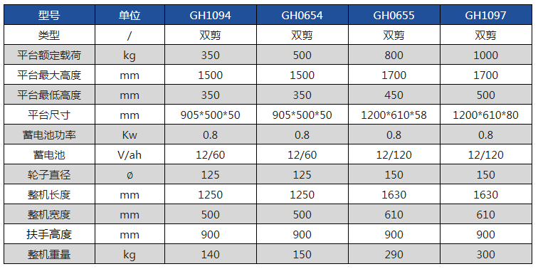 冠航牌進(jìn)口液壓泵雙剪式電動(dòng)/液壓升降平臺(tái)車