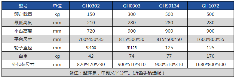 冠航牌小型手動(dòng)單剪液壓升降平臺(tái)車(chē)貨物搬運(yùn)車(chē)