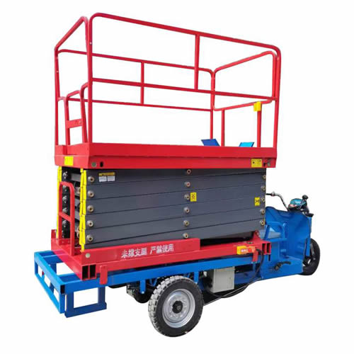 三輪剪叉車載升降機集四輪移動與二輪牽引于一身,采用汽車、三輪車或電瓶車底盤做平臺底 架,利用本車發(fā)動機或直流電做動力,既可行駛又可驅(qū)動平臺升降,廣泛用于城建、油田、交通、市政、廠區(qū)等行業(yè)的高空作業(yè),采用外來動力做牽引,利用三相電源或柴油機做動力,移動方便快捷,車載剪叉式升降機是集四輪移動與二輪牽引式于一身,采用汽車底盤做平臺底架,利用汽車發(fā)動做動力,既可行駛又可驅(qū)動升降機。車載剪叉式升降機以小型貨車(汽車)或電瓶車為載體,移動靈活迅速,操作簡單,作業(yè)范圍廣。